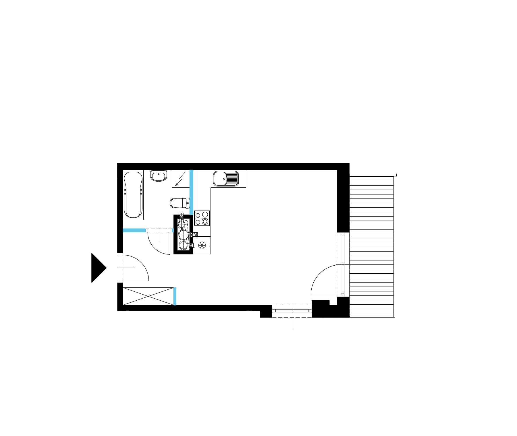 Salon z aneksem: 23.37 m2